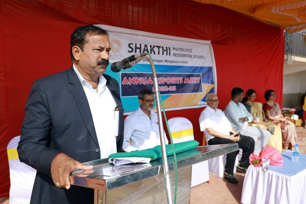 Mangaluru, 23.11.2022 : “Being a sports person it is important to train the mind, stay fit and ready to battle always. Persistence can change failure into extraordinary achievement. Both boys and girls must have the willingness to remain fit. A girl child must continuously have the urge to stay fit, if not, she becomes a victim to various ailments and obesity” said Dr. Keshava Murthy, Deputy Director of Department of Physical Education, University College, Mangaluru inaugurating the Annual Sports Meet of Shakthi PU College and Shakthi Residential School at Mangala Stadium.