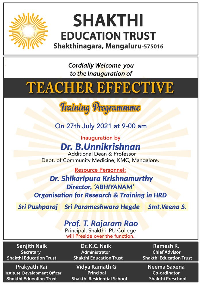 “Anyone who stops learning is old, whether at twenty or eighty. Anyone who keeps learning stays young.” said Henry Ford A 3 day’s training programme for the faculty of Shakthi...