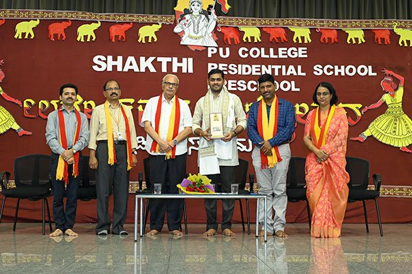 ಕಾರ್ಯಕ್ರಮದ ಮುಖ್ಯ ಅತಿಥಿಗಳಾಗಿ ಆಗಮಿಸಿದ ಶ್ರೀ ಆದರ್ಶ ಗೋಖಲೆಯವರು ಸಭೆಯನ್ನು ಉದ್ದೇಶಿಸಿ ಮಾತನಾಡಿ ನಮ್ಮ ಮಣ್ನು ನಮ್ಮ ನಾಡು ಪ್ರಪಂಚಕ್ಕೆ ಪ್ರೇರಣೆಯನ್ನು ನೀಡಿದೆ. ಭಾರತದ ಸ್ವಾತಂತ್ರ್ಯ ಸಂಗ್ರಾಮದ ಕಿಡಿ ಹೊತ್ತಿಸಿದ್ದು ಕನ್ನಡ ನಾಡಿನ ಮಂಗಳೂರಿನ ಮಹಿಳೆ ಅಬ್ಬಕ್ಕ. ಗದಗದ ನಾರಣಪ್ಪ ಮಡಿ ವಸ್ತ್ರವನ್ನುಟ್ಟು ಬರೆದ ಕನ್ನಡದ ಶ್ರೇಷ್ಠ ಗ್ರಂಥ ಕುಮಾರವ್ಯಾಸ ಭಾರತ ಭಾರತದ ಅತ್ಯಂತ ಶ್ರೇಷ್ಠ ಗ್ರಂಥ. ತಮ್ಮ ಅನುಭವ ಮಂಟಪದ ಮೂಲಕ ಪ್ರಪಂಚಕ್ಕೆ ಮೊಟ್ಟ ಮೊದಲಿಗೆ ಪ್ರಜಾಪ್ರಭುತ್ವದ ಪರಿಕಲ್ಪನೆಯನ್ನು ನೀಡಿದ ಬಸವಣ್ಣನವರು ಕನ್ನಡ ನೆಲದವರು ಎಂಬುದು ನಮ್ಮ ಹೆಮ್ಮೆ. ಕನ್ನಡದ ಮಣ್ಣಿನ ವಿಜಯನಗರ ಸಾಮ್ರಾಜ್ಯದ ವೈಭವವನ್ನು ನೋಡಲು ವಿದೇಶಿಗರು ತಂಡೋಪತಂಡವಾಗಿ ಬರುತ್ತಿದ್ದರು. ಶಕ್ತಿ ವಿದ್ಯಾಸಂಸ್ಥೆಯ ಮಕ್ಕಳ ಕನ್ನಡದ ಸ್ಪಷ್ಟತೆಯನ್ನು ಗಮನಿಸಿದರೆ ಆಲೂರು ವೆಂಕಟರಾಯರಿಗೆ ಅತ್ಯಂತ ಸಂತೋಷವಾಗಿದೆ. ವೆಂಕಟರಾಯರು ಕಂಡ ಕನಸು ನನಸಾಗಿದೆ. ಕನ್ನಡ ನಾಡು ಪ್ರಪಂಚಕ್ಕೆ ಕ್ಷಾತ್ರದಿಂದ ಬ್ರಾಹ್ಮದವರೆಗೆ, ಭೂಗೋಲದಿಂದ ಖಗೋಲದವರೆಗೆ ಎಲ್ಲ ವಿಷಯದಲ್ಲೂ ಮಾದರಿಯಾಗಿದೆ ಎಂದು ಹೇಳೀದರು. ಒಂದು ಪುಸ್ತಕ ಒಬ್ಬ ಸಾಮಾನ್ಯ ಬಾಲಕನನ್ನು ಸುಭಾಶ್ ಚಂದ್ರ ಬೋಸ್ ಆಗಿ ಬದಲಾಯಿಸಿತು. ಆದ್ದರಿಂದ ಪಾಲಕರು ತಮ್ಮ ಮಕ್ಕಳ ಹುಟ್ಟಿದ ಹಬ್ಬಕ್ಕೆ ಒಂದು ಕನ್ನಡದ ಪುಸ್ತಕವನ್ನು ಉಡುಗೊರೆಯಾಗಿ ನೀಡಿ ಆ ಪುಸ್ತಕವನ್ನು ಓದಿ ಅದನ್ನು ಜೀವನದಲ್ಲಿ ಅಳವಡಿಸಿಕೊಳ್ಳಲು ಪ್ರೇರಣೆ ನೀಡಬೇಕು ಎಂದರು.