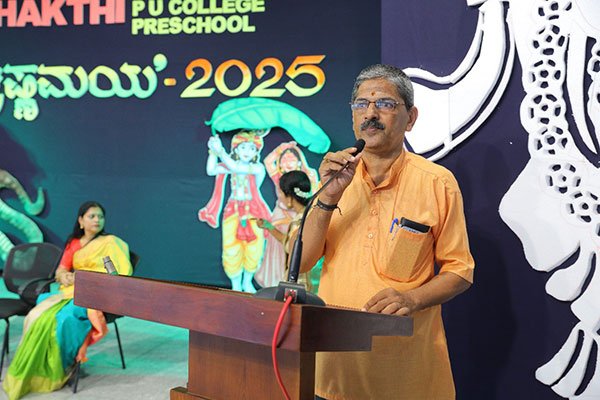ಹೊಸದಿಂಗಂತ ದಿನ ಪತ್ರಿಕೆ ಮಂಗಳೂರು ಇದರ ಸ್ಥಳೀಯ ಸಂಪಾದಕರಾದ ಪ್ರಕಾಶ್ ಇಳಂತಿಲ ಅವರು ಕೃಷ್ಣವೇಷಧಾರಿ ಮಕ್ಕಳೊಂದಿಗೆ ಬೆಣ್ಣೆ ತುಂಬಿದ ಮಡಕೆಯನ್ನು ಒಡೆಯುವುದರ ಮೂಲಕ ಕೃಷ್ಣ ವೇಷ ಸ್ಪರ್ಧೆ ’ಕೃಷ್ಣ ಮಯ 2025’ ಅನ್ನು ಉದ್ಘಾಟಿಸಿ ನಂತರ ಮಾತನಾಡಿದ ಇವರು ’ಶ್ರೀ ಕೃಷ್ಣನದು ಪೂರ್ಣಾವತಾರ, ಅವನ ವೇಷವನ್ನು ಮಕ್ಕಳಿಗೆ ತೊಡಿಸುವುದೆಂದರೆ ನಮ್ಮ ಮನಸ್ಸನ್ನು ಮಗುವಿನ ಮನಸ್ಸನ್ನಾಗಿಸುವುದು ಎಂದರ್ಥ. ಇದರ ಮೂಲಕ ನಾವು ಜೀವನದಲ್ಲಿ ಆನಂದವನ್ನು ಪಡೆಯಬಹುದು. ಕೃಷ್ಣ ಪ್ರಜ್ಞೆಯನ್ನು ರೂಢಿಸಿಕೊಳ್ಳಬೇಕು. ಸಹಸ್ರ ವರ್ಷಗಳ ಇತಿಹಾಸ ಇರುವ ಸಂಸ್ಕಾರ ಸಂಸ್ಕೃತಿ ನಮ್ಮದು. ಅದನ್ನು ನಾವು ಮರೆತು ಗುಲಾಮರಾಗಿ ಬದುಕುತ್ತಿದ್ದೇವೆ. ಸುಕೃತಿಯನ್ನು ಮರೆತು ವಿಕೃತಿಯನ್ನು ಮೆರೆಯುತ್ತಿದ್ದೇವೆ. ವಿಕೃತಿ ಯನ್ನು ಬಿಟ್ಟು ಸುಕೃತಿಯನ್ನು ಪಡೆಯಬೇಕಾದರೆ ಕೃಷ್ಣನನ್ನು ನಾವು ಆರಾಧಿಸಬೇಕಾಗಿದೆ. ಇದು ಕೇವಲ ಕೃಷ್ಣ ವೇಷ ಸ್ಪರ್ಧೆ ಮಾತ್ರ ಅಲ್ಲ. ನಮ್ಮ ವಾತಾವರಣವನ್ನು ಕೃಷ್ಣಮಯವಾನ್ನಾಗಿಸುವ ಸಂದರ್ಭ. ನಾವು ಮತ್ತೆ ನಮ್ಮ ಸನಾತನ ಸಂಸ್ಕೃತಿಯ ಬೇರಿಗೆ ಹೋಗಬೇಕಾಗಿದೆ. ಜಗತ್ತಿಗೆ ಮಂಗಳವನ್ನು ಉಂಟುಮಾಡಲು ನಾವು ಕೃಷ್ಣ ಪ್ರಜ್ಞೆಯನ್ನು ರೂಢಿಸಿಕೊಳ್ಳಬೇಕು. ನಾವು ನಮ್ಮ ಇತಿಹಾಸದಿಂದ ಪಾಠ ಕಲಿಯುವುದರೊಂದಿಗೆ ಇತಿಹಾಸವನ್ನು ನಿರ್ಮಾಣ ಮಾಡಲು ಸಾಧ್ಯ. ನಮ್ಮ ಸಂಸ್ಕೃತಿಯ ಮೂಲವನ್ನು ಮತ್ತೆ ಪ್ರಜ್ಞಾಪೂರ್ವಕವಾಗಿ ಪಡೆದುಕೊಂಡು ತಾಯಿ ಭಾರತಿಯನ್ನು ಜಗನ್ಮಾತೆಯನ್ನಾಗಿಸಬೇಕಾಗಿದೆ. ಈ ಶಕ್ತಿ ವಿದ್ಯಾ ದೇಗುಲ ಸಕಲ ಮೂಲ ಸೌಕರ್ಯಗಳನ್ನು ಹೊಂದಿಕೊಂಡು, ಮಕ್ಕಳಿಗೆ ಸಂಸ್ಕೃತಿಯ ಪ್ರಜ್ಞೆಯನ್ನು ನೀಡುವ ಶಿಕ್ಷಣವನ್ನು ನೀಡುತ್ತಿದೆ ಹಾಗಾಗಿ ಕೆ ಸಿ ನಾೖಕ್ ಅವರಿಗೆ ಅಭಿನಂದನೆಗಳು. ಎಲ್ಲರಿಗೂ ಶ್ರೀ ಕೃಷ್ಣನು ಒಳ್ಳೆಯದನ್ನು ಮಾಡಲಿ ಎಂದು ಶುಭ ಹಾರೈಸಿದರು.