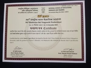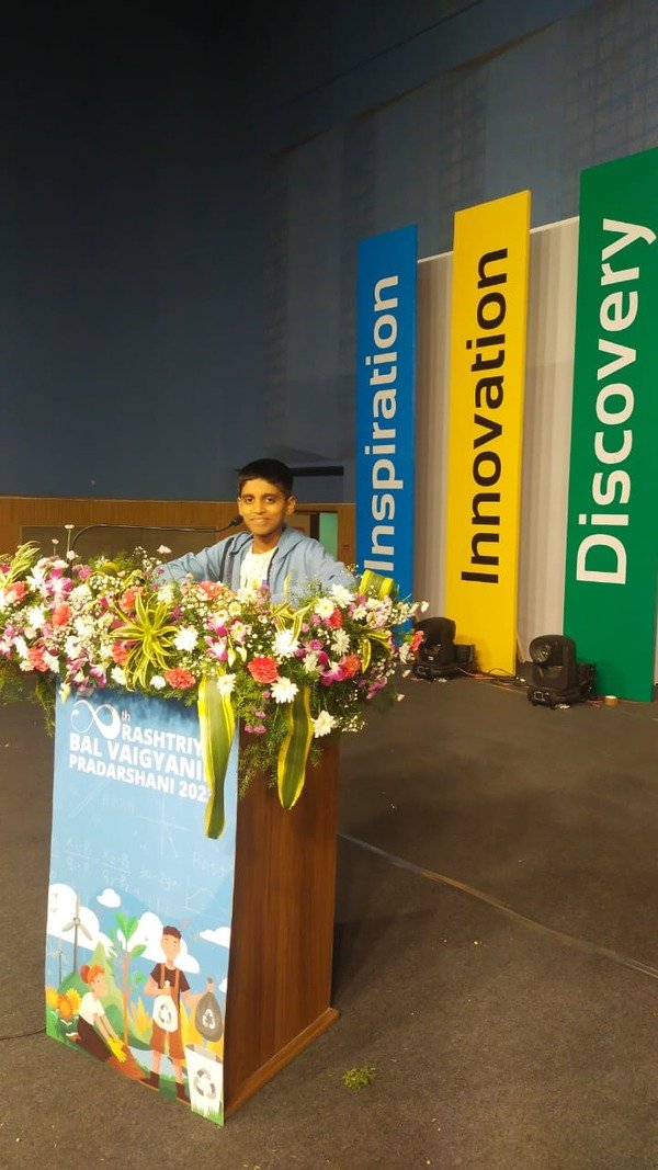 He also attended the “50th Rashtriya Bal Vaigyanik Pardarshini” held at Shiv Chatrapati Sports Complex, Balewadi, Pune from 25th Dec to 31st Dec 2023 and bagged Inspirational Model.