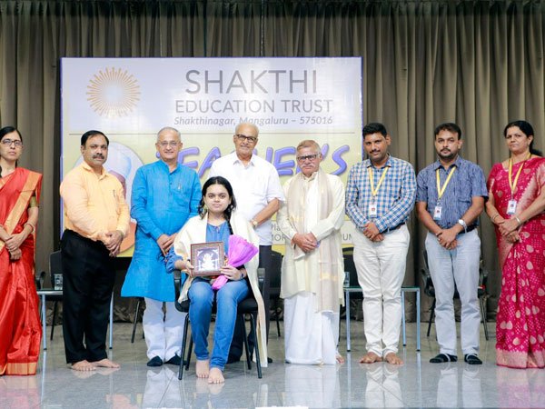 Manasa, outgoing student of II PU was felicitated for her outstanding achievement of scoring 600/600 in Board Exams. In reply to the felicitation she said she was fortunate to be a part of Shakthi and appreciated the efforts of all her lecturers, fellow students and the Management.